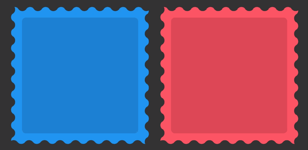 页面中会呈现两个色彩不同的方块,方块的四个边缘都带有持续滚动的波浪动画效果,波浪线条细腻且动态流畅,整体视觉上既简洁又有层次感,这种效果可以适配在卡片、按钮、模块边框等多种场景中。